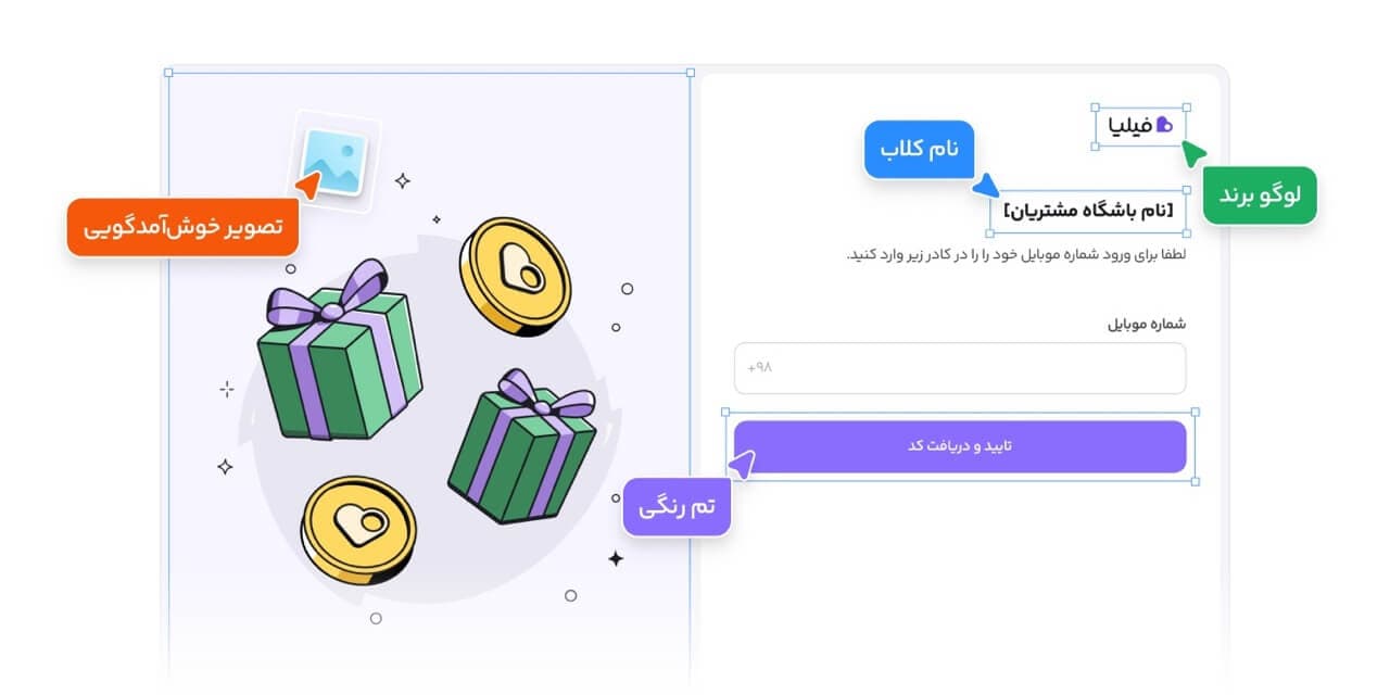 با امکانات شخصیسازی باشگاهمشتریان فیلیا، ظاهر و حس کسبوکارتان را دقیقاً مطابق با برندتان بسازید.